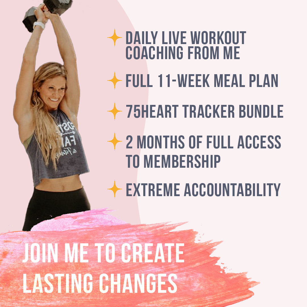 • Daily Workout Coaching from Me – inside our private Facebook group, I’ll break down each day’s workout, talk you through the purpose, and give you extra motivation to crush it.